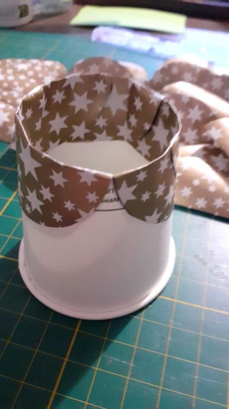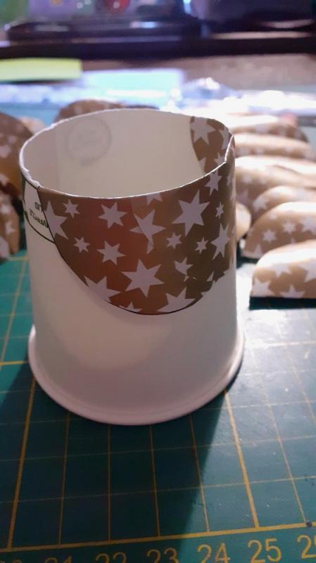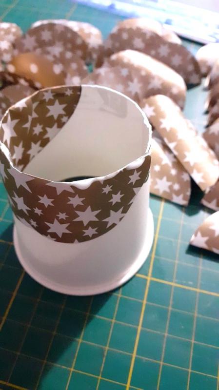 J'ai utilisé un  petit gobelet papier dont j'ai retiré le fond mais vous pouvez utiliser un petit bocal ou un verre.