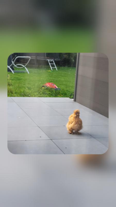 Nous revoilà de retour Pour une histoire de Poule Dans la nouvelle maison de mon fils les jardins ne sont pas clôturer, et comme l'ancien propriétaire sa ne le gênait pas la poule continue a venir sur la terrasse Bissus lisette