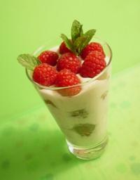 Remplissez 4 petites coupes individuelles en alternant les couches de mousse et de framboises. Terminez par des framboises. Décorez d'une feuille de menthe. Réservez au refrigérateur environ 2 heures.