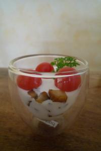 Montez les verrines : déposez les tomates confites, le mélange crème-foie gras, les champignons cuits et persillés, puis de nouveau le mélange crème-foie gras. Décorez avec des tomates cerise et du persil avant de servir.