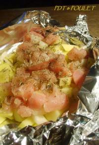 Pelez et détaillez les pommes de terre en petits cubes. Déposez-les dans la papillotte.