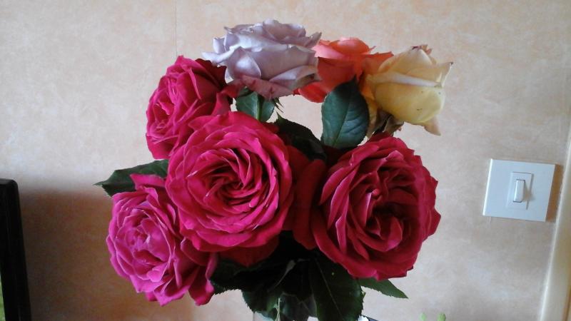 Mon amie m’à apporte ce joli bouquet roses du jardin
