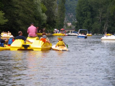 TYROLIENNE CANOË BATEAU À MOTEUR BARQUE MARCHE UNE PETITE PAUSE DANS LES BARAQUES POUR MANGER UNE GLACE CRÊPE OU UNE BOISSON FRAICHE