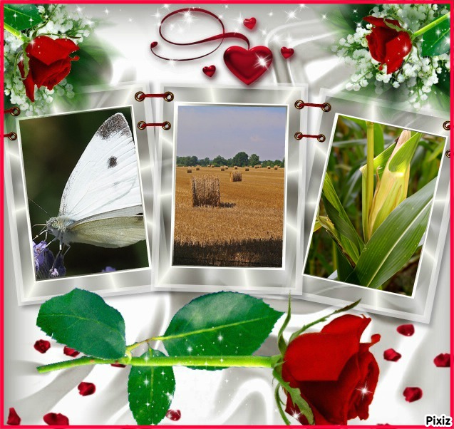 Un papillon qui c posé, les champs de paille bien dorée le mais qui pousse la campagne est bien belle