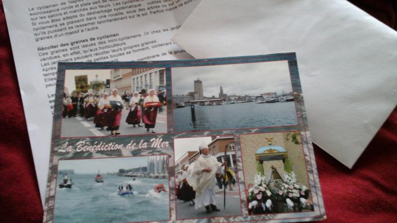 Une jolie carte de Dunkerque que je ne connais pas du tout... Accompagnée de graine de cyclamens Je vais suivre les instructions pour les semer J'ai vu que Sylvie du blog les bon restos les avait semées dans des boîtes à oeufs