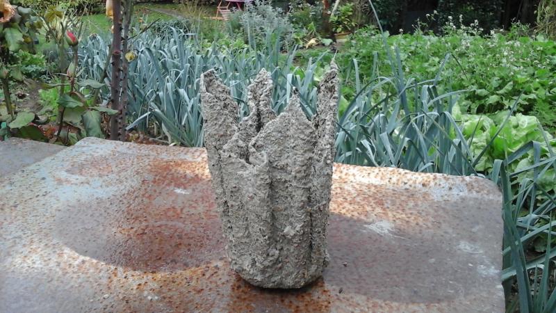 UNE AUTRE BIDOUILLE UN VIEUX CHIFFON TREMPÉ DANS DU BËTON ET RETOURNÉ SUR UN SUPPORT