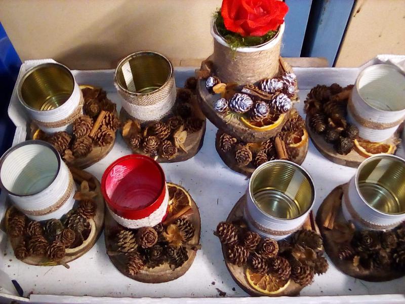 Aujourd'hui c'est  montage des boîtes sur les rondelles de bois