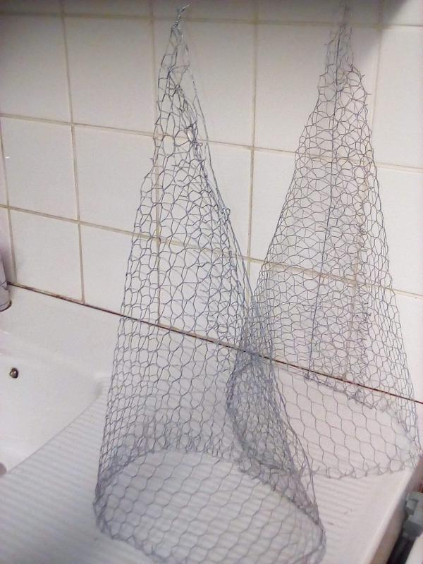 En grillage Vous taillez un carré et vous faites comme un cornet mais pas à la crème 😉😉 Vous attachez de place en place Et vous le garnissez de mousse des bois