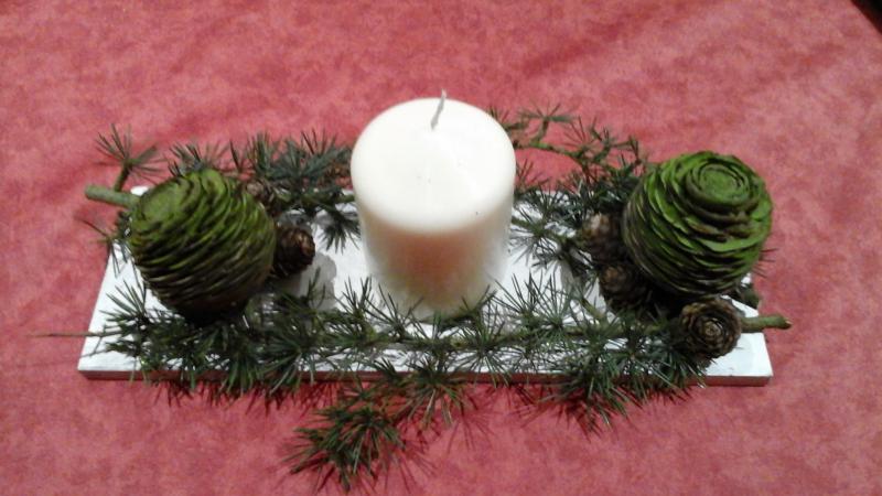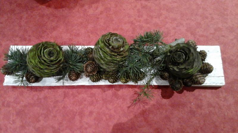 Avec des pommes de pin  une mini guirlande Led sera ajoutée