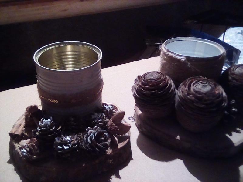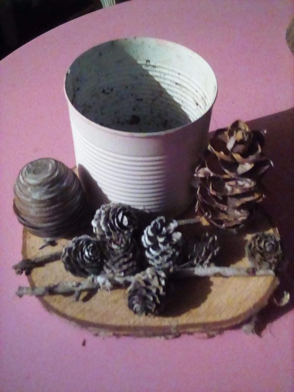 Pour le 1er marché de Noël Donc je continue mes décos J'ai réalisé 25 boîtes sur rondelles bois D'autres sans rondelles bois Des jacynthes y seront placées