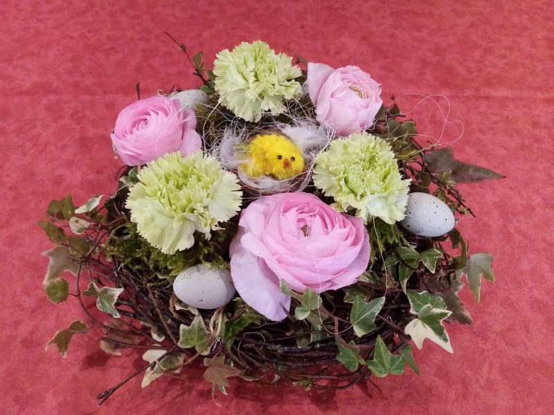 nid de paques et fleurs