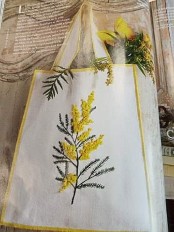 Une idée pour vous dans un magazine ce matin lu pour vous J'ai un sac à faire pour une mamie qui vient à la médiathèque 92 ans ... Je lui offrirai Je ne sais pas broder mais je ferai un appliqué de motifs