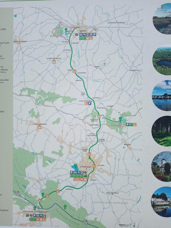 Partit hier matin on a fait cette voie verte 45 km aller retour Ptite pause déjeuner le midi à côté du lac de la station Balnéaires de Bagnoles de l'orne