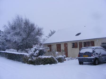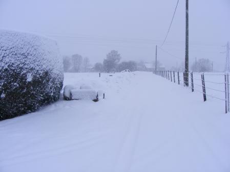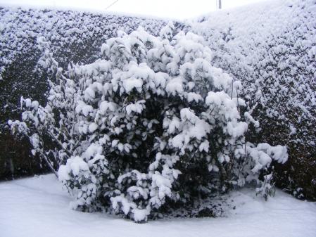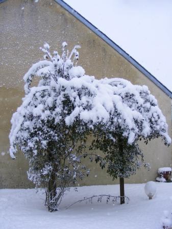 le rosier de la pergola avec ses roses de neige!