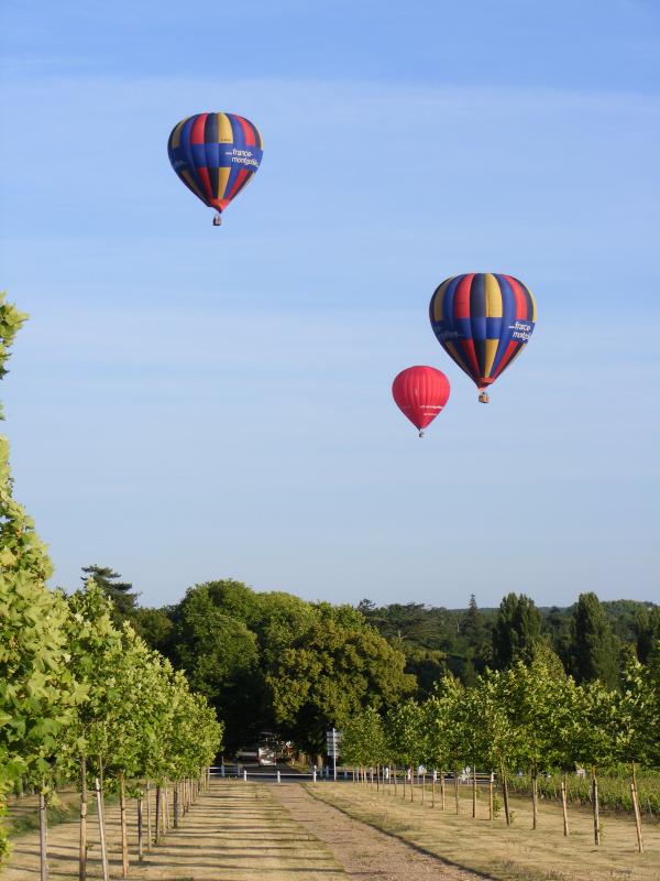 Tout prés de notre hébergement les Montgolfières qui s'envolent  pour survoler le Chateau de Chenonceau!