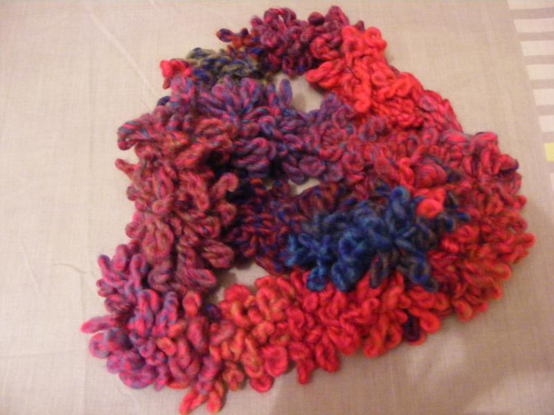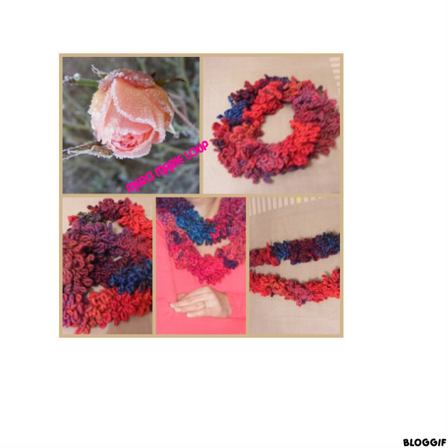 Merçi Marie Loup pour cette jolie écharpe aux couleurs qui me plaisent beaucoup qui vont trés bien avec mon manteau aux boutons rouges (voir mon article dans décos bois de coco)