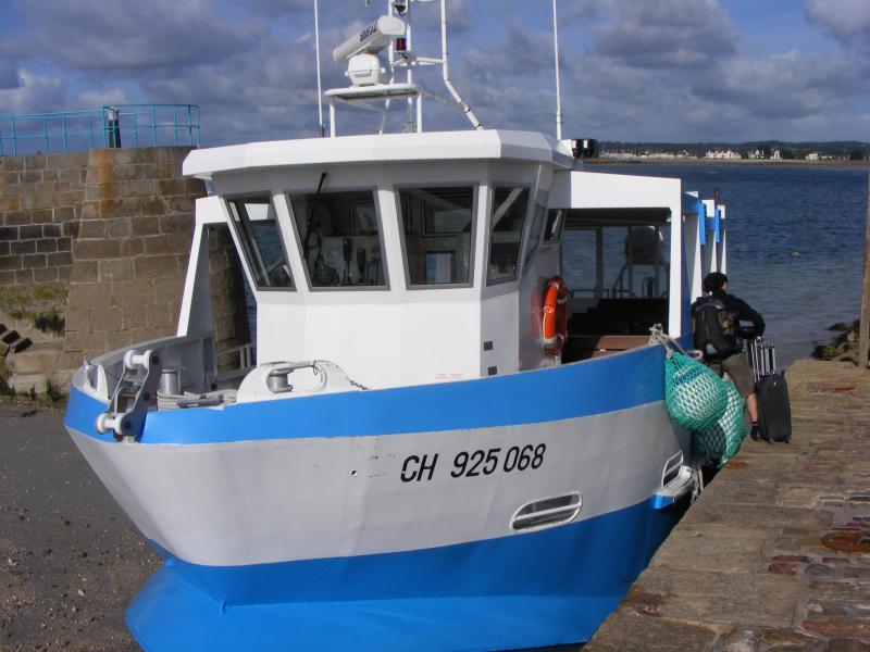 çi dessus le petit bateau qui nous conduit sur l'île à marée hte tel étair le cas cejour là