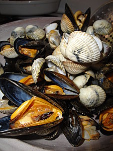 le soir nos amis nous ont cuisiné un joli plat de moules au vin blanc! hum! no comment!!!