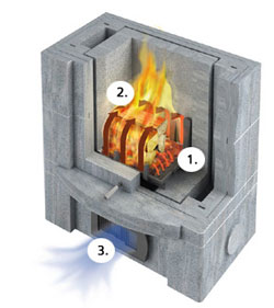 Pierre miracle âgée de 2 milliards dannée venu de Finlande, elle est formée de talc et dun taux de magnésie particulièrement élevé. Cette composition lui permet demmagasiner la chaleur 8 à 10 fois plus rapidement quune pierre réfractaire normale et le pouvoir daccumulation est deux fois supérieur à celui de la chamotte ou de la faïence.