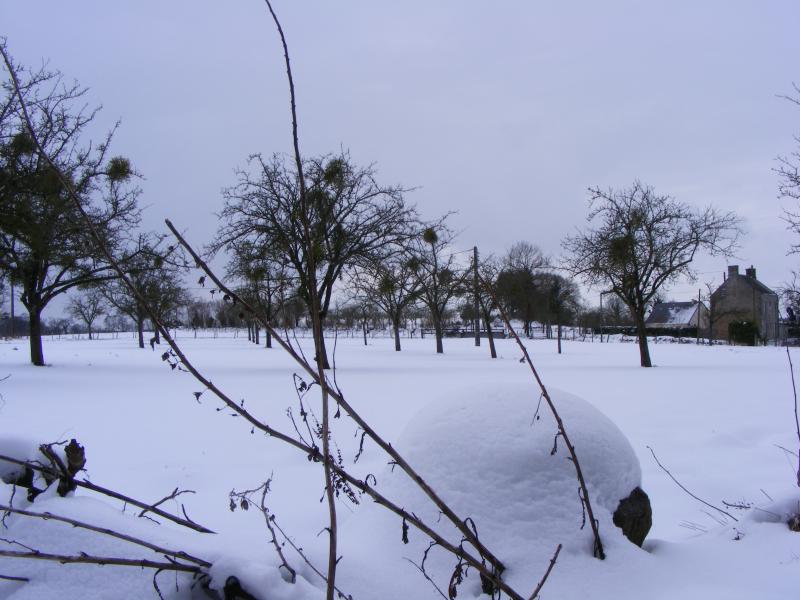 moins froid qu'hier ça fond  et encore bcp de neige dans la campagne Normande