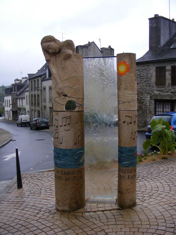 pendant ce wk Ascension une jolie fontaine au aspect moderne elle se situe a Chateauneuf du Faou