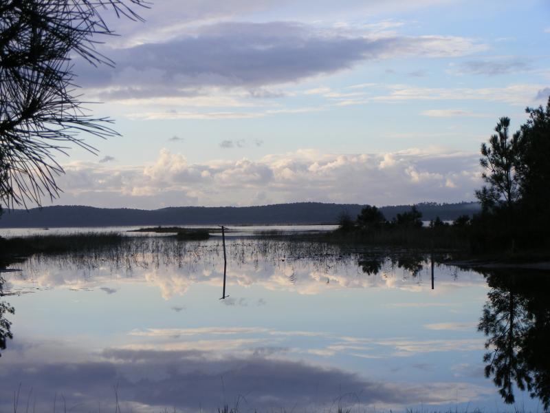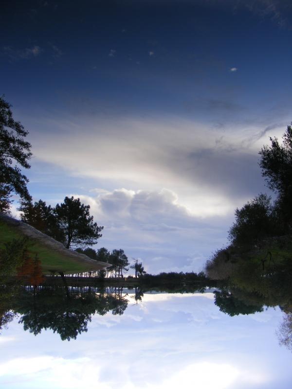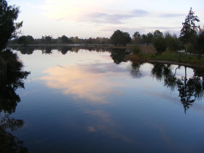 canal peu profond, où poussent canards et nénuphars...
