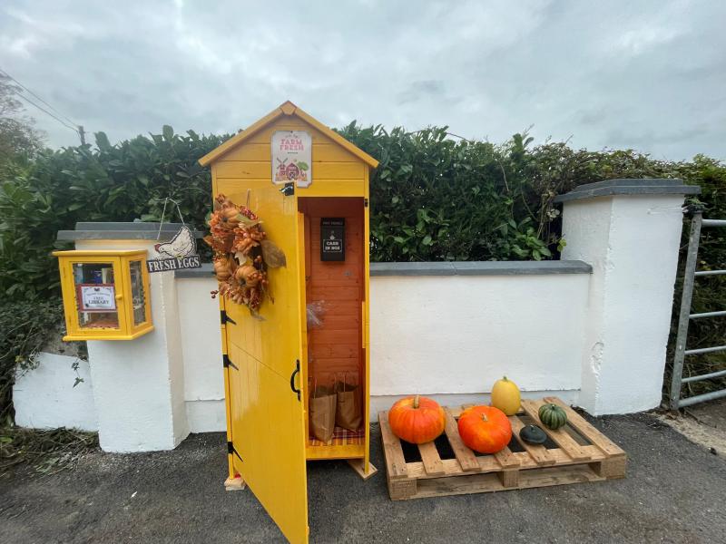 Et voilà sa  petite "boutique" de fruits, légumes et œufs...