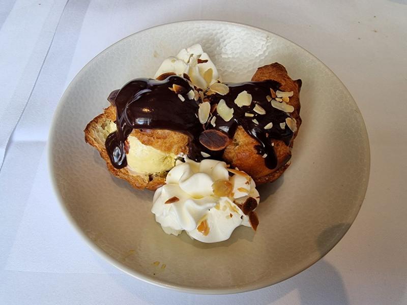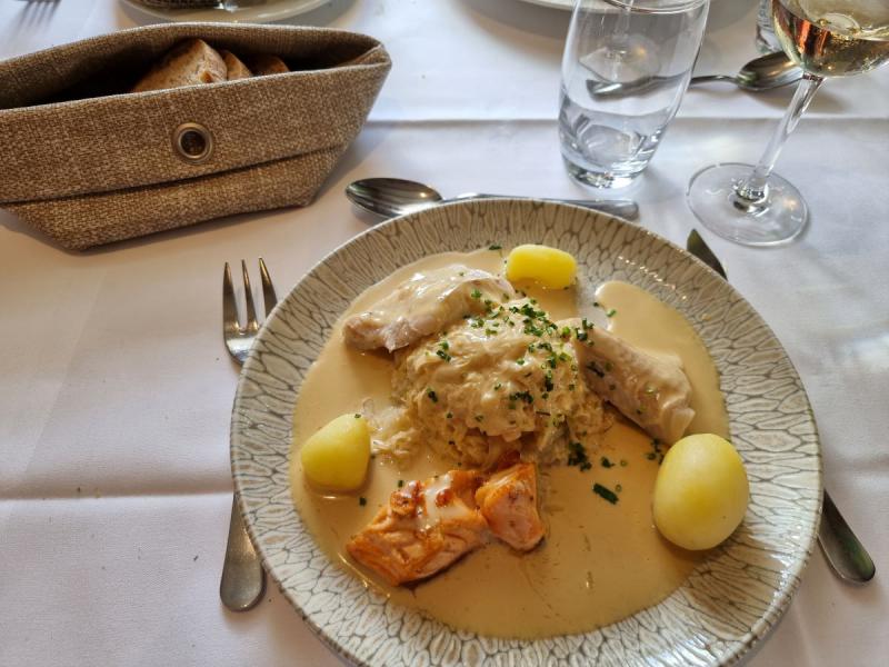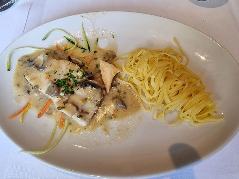 Lilly et moi avons choisi le filet de sandre sauce matelote. Bien sûr les pâtes fraîches qui accompagnent le poisson sont fameuses.