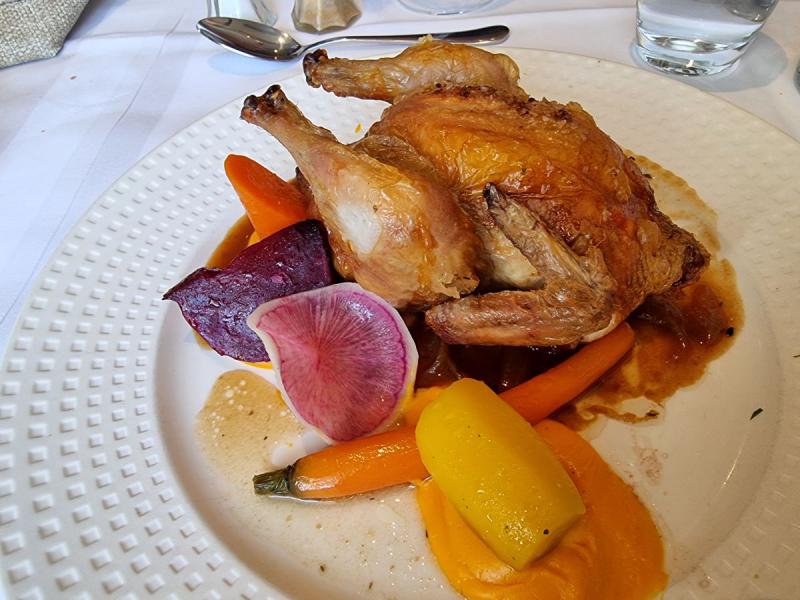 Lilly et moi avons pu goûter pour une première fois au poussin façon grand mère. Les plats sont accompagnés de frites ou de spaetzle.