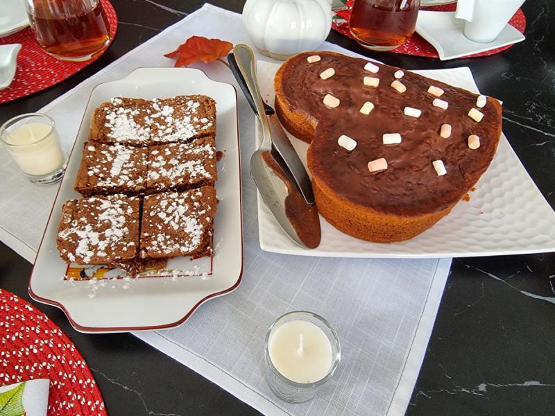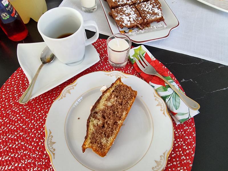 Lilly nous a préparé un petit café gourmand accompagné d'un brownie au chocolat et d'un marbré au nutella.