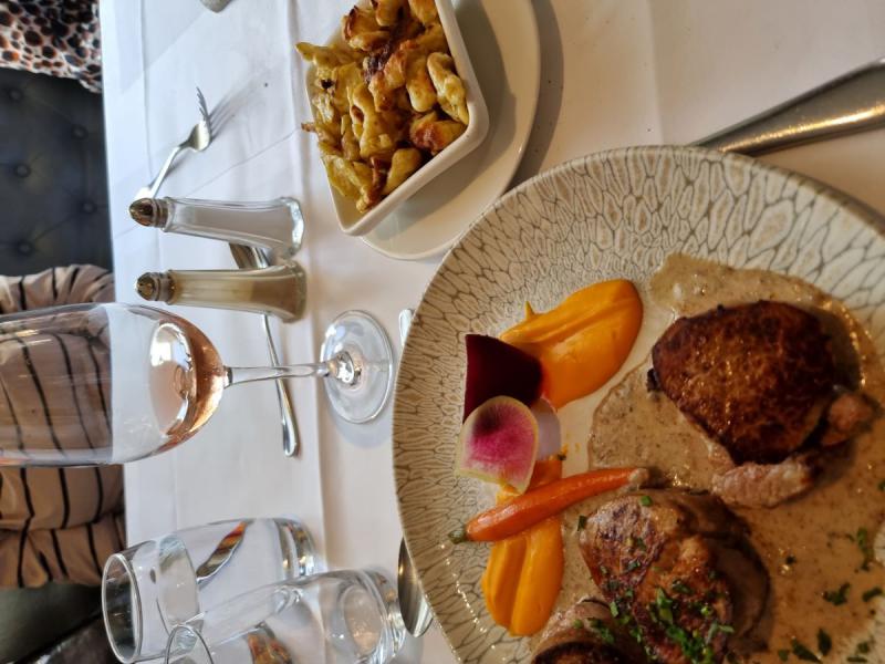 Patrick, lui, poursuit sa dégustation par un filet mignon de veau et sa sauce duxelles de champignons.