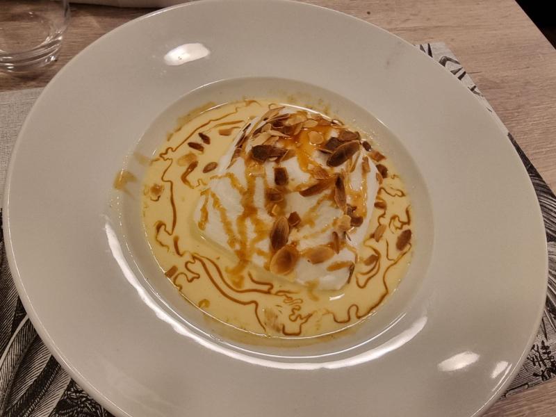 Nous ne résistons pas à finir notre repas par un bon dessert.....un fondant au nutella accompagné d'une crème anglaise vanille et chocolat et d'une boule de glace à la vanile pour Nicolas.
