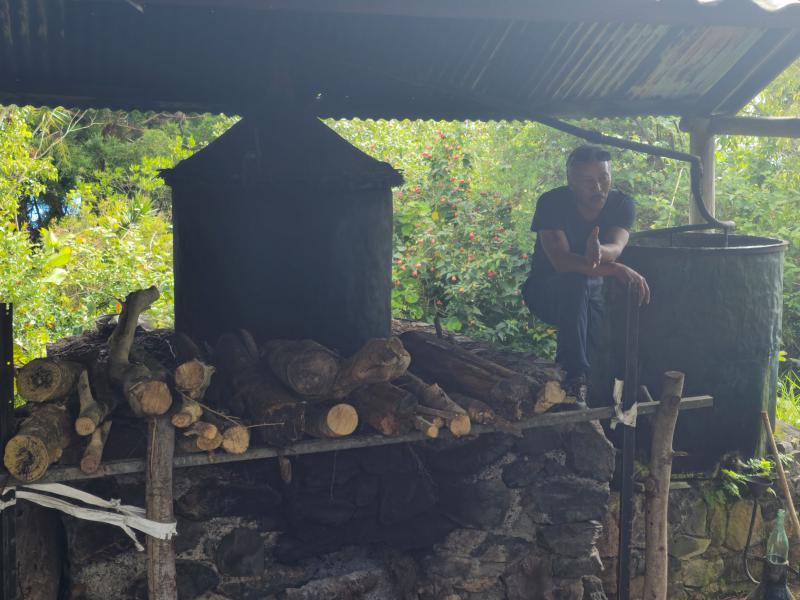 Sur les routes pittoresques des hauts de La Réunion, et en revenant du belvédère du Maïdo, Nicolas et ses amis se sont arrêtés dans une distillerie d'huiles essentielles spécialisée dans l'essence de Géranium Rosat ou d'Eucalyptus.