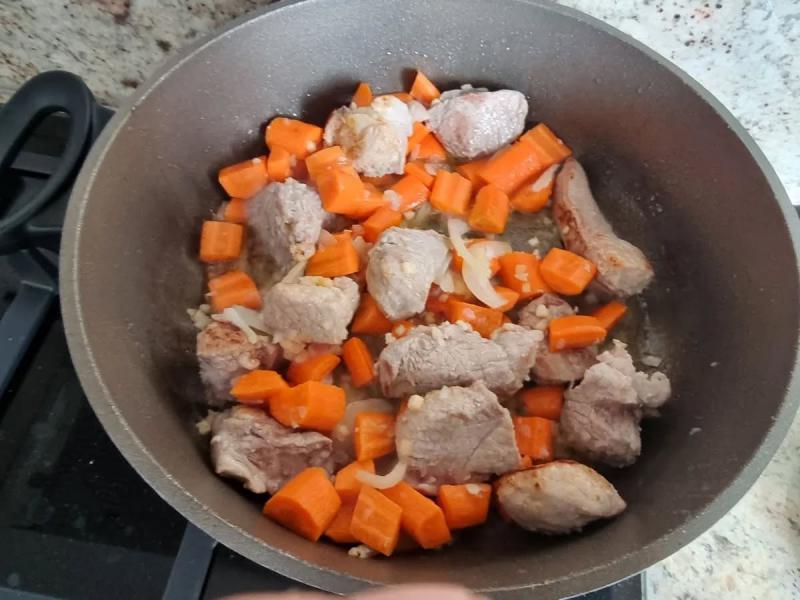 Faites revenir le sauté de porc quelques minutes.