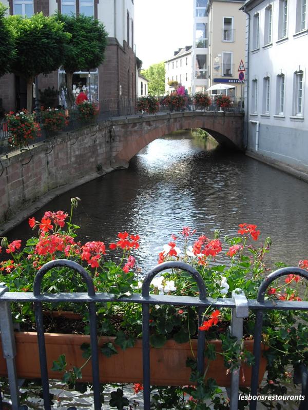 La ville étant traversée par la Leuck, une cascade et un moulin sont encore visibles dans le centre ville (voir l'article sur ce lien). En continuant notre balade, nous arrivons sur une petite place surnommée "La Petite Venise Allemande". La Leuck traverse gentiment la ville avant de se transformer en cascades un peu avant le moulin.