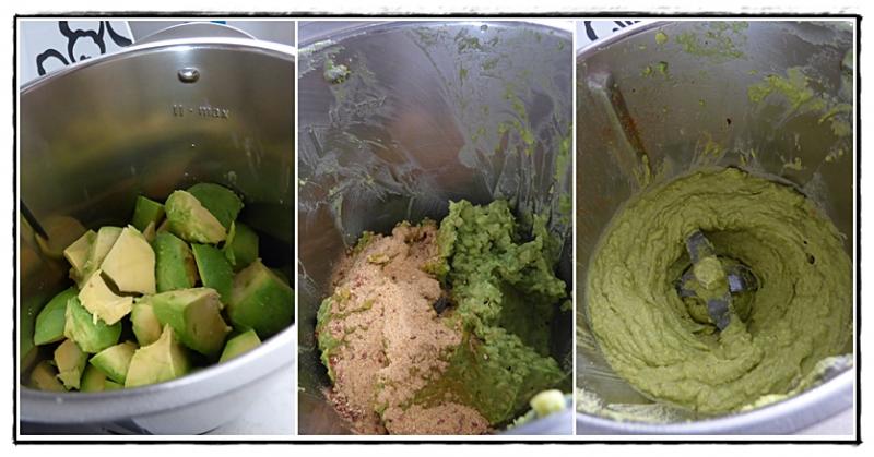 2 - Eplucher les avocats et les ajouter dans le bol. Mixer 30 secondes, vitesse 3 puis progressivement, monter à la vitesse 6.