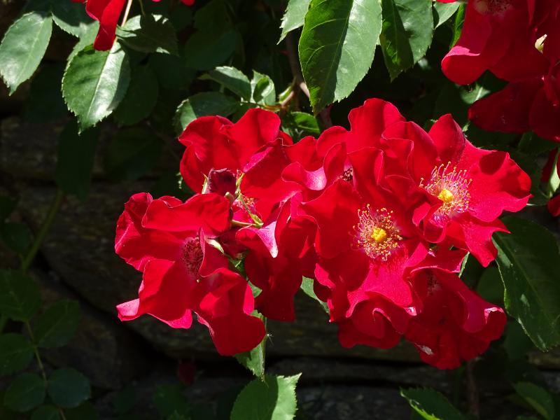 Ce rosier Anglais qui grimpe dans les autres arbres forme des cascades de fleurs