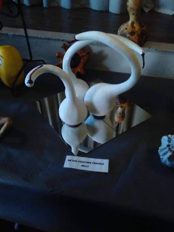 PETITE COMMUNE LIMITROPHE ORNE ET MAYENNE BEAUCOUP DE MONDE POUR CETTE MANIFESTATION QQ ACHATS 1 PETIT FROMAGE DE CHEVRE DES FLEURS CAGES DAMOUR (POUR MON ART ) une coloquinte blanche pour mon court de demain au detour d'une allee un jeu de grattage gratuit nous avons gagné un mug voiçi qq photos pour résumé cet belle expo JE N AI PAS TROUVE CHAUSSURES A MON PIED