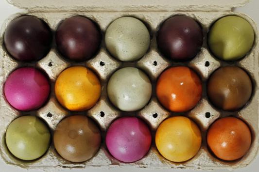 mais il y a pleins d'astuces naturels pour coloré les coquilles essayez vous serez surpris!!! Or profond : Faites bouillir les œufs dans une solution de curcuma pendant 30 minutes. Terre de Sienne : Faites bouillir les œufs dans une solution de peaux d'oignons pendant 30 minutes. Noir, Brun sombre : Faites bouillir les œufs dans du café noir, pendant 30 minutes. Jaune pâle : trempez les œufs dans une solution de curcuma à température ambiante pendant 30 minutes. Orange : trempez les oeufs dans une solution de peaux d'oignons à température ambiante pendant 30 minutes. Brun léger : trempez les oeufs dans une solution de café noir à température ambiante, 30 minutes. Rose clair : trempez les oeufs dans une solution de bettrave à température ambiante pendant 30 minutes. Bleu clair : trempez les œufs dans une solution de chou rouge à température ambiante, 30 minutes. Bleu royal : trempez les œufs dans une solution de chou rouge à température ambiante toute la nuit. Lavande : trempez les œufs dans une solution de betteraves à température ambiante, 30 minutes. Ensuite, dans une solution de chou rouge à température ambiante, 30 secondes. Vert chartreuse : trempez les œufs dans une solution de curcuma à température ambiante, 30 minutes. Ensuite, dans une solution de chou rouge pendant 5 secondes. Saumon : trempez les œufs dans une solution de curcuma à température ambiante, 30 minutes. Ensuite, dans une solution de peaux d'oignons à température ambiante, 30 minutes. on n'intensifie les couleurs en les laissant plus longtemps aprés c'est vous la chimiste!!!