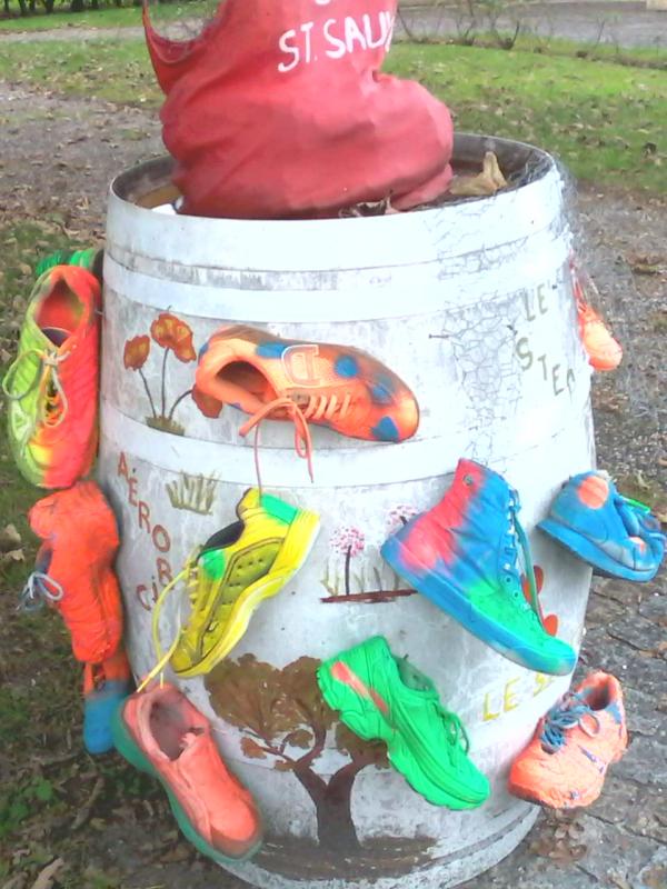 de retour de notre wk en Médoc un wk bien sympa en famille vendredi aprés midi nous avons fait une jolie ballade de 4kms dans les vignes en direction du Chateau de St sauveur Sur le chemin du retour des tonneaux qui ne servent plus ont été joliment décorés,je vous laisse admirer