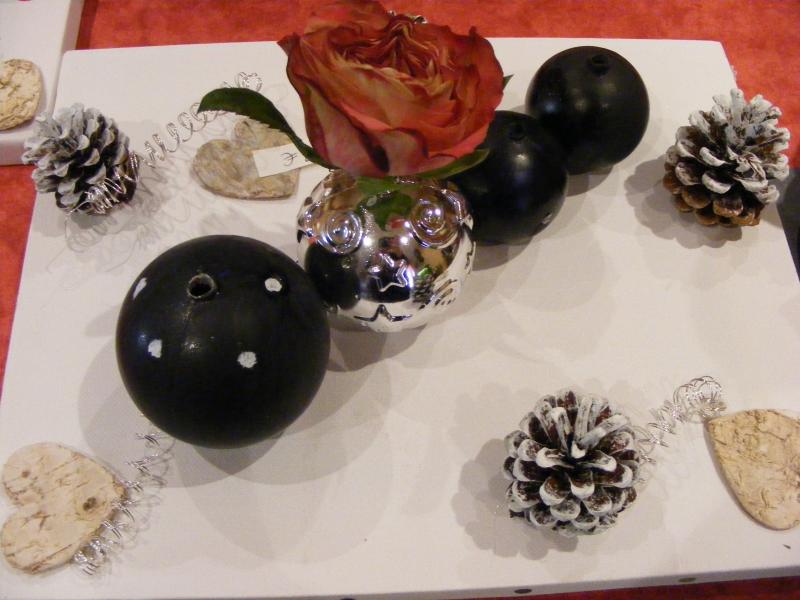 on a mm eu la visite du pére NOEL les enfants de la commune on apporté des décos pour embellir le sapin qui trône sur la place une belle vente 65 articles exposés je suis rentrés avec 10 piéces seulement que je n'ai pas vendues mais je les offrirais dans mon entourage quelques photos de mon stand