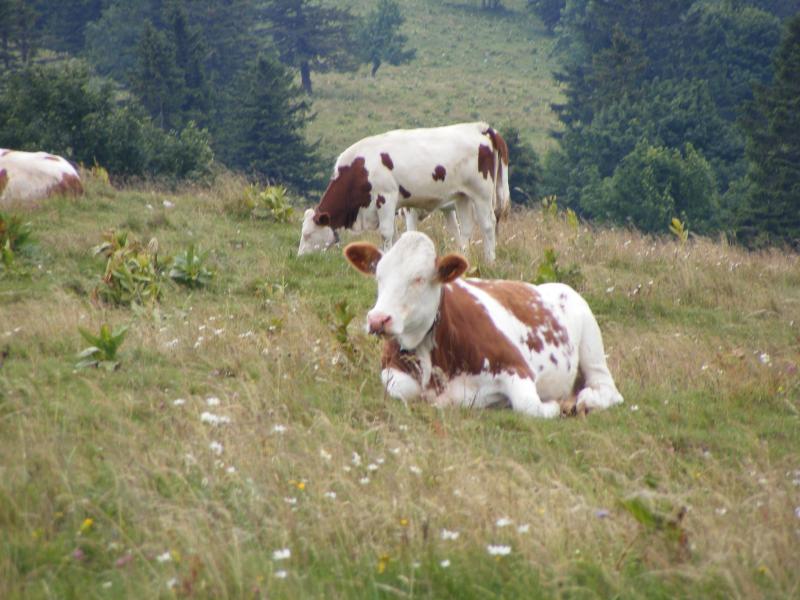 nous allons faire une belle rando de qq heures! avec pause pique -nique avec les meuh d'içi elles sont bien jolies ces Montbéliardes!