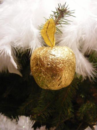 içi une pomme recouverte de papier doré !