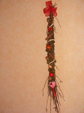 j'ai glâné cette semaine des branchages de bouleau, de sapin avec minis pommes de pin, qq batons de canelle de la cuisine, des petites pommes malus... 15 mns aprés voilà !