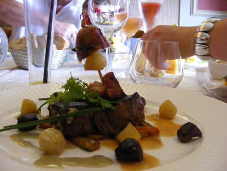 pièce de boeuf ou d'agneau et petits lègumes!!! un délice!!! suivi d'1 salade au livarot poelé!!!