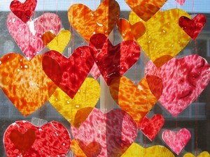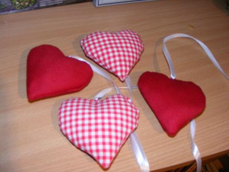 qq petits coeurs que j'ai fabriqué pour l'hotesse de l'office du tourisme pour sa vitrine....