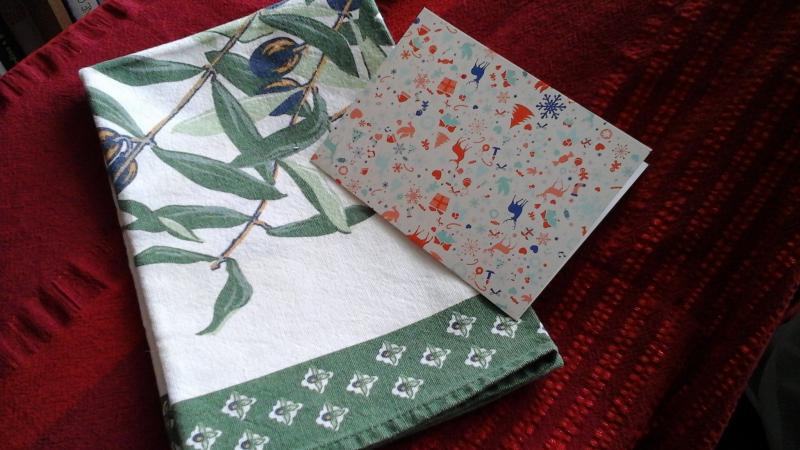 Des petits gants et ce petit personnage ... Un paquet de sablés aux caramel Tu est douée Maryse encore merci pour tout Merci à FANY pour ta carte remplie de tes voeux Et ce beau torchon provençal C'est beaucoup trop ...