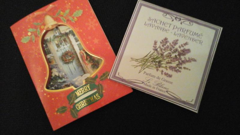 UNE POCHETTE AUX SENTEURS LAVANDE UNE JOLIE CARTE ET PLEINS DE SOUHAITS UN BEAU PARTAGE ENCORE MERCI