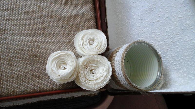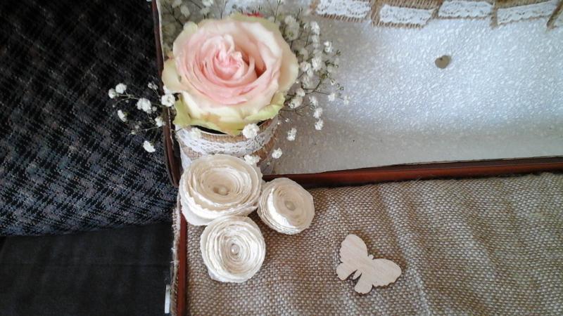 Une vieille valise achetée sur le bon coin Des fleurs en papier canson De la cordelettes des épingles Et à plus tard pour la suite ......