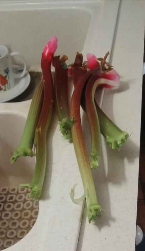 J'ai simplement incorporé ala pâte des tronçons de rhubarbe après macération dans du sucre.